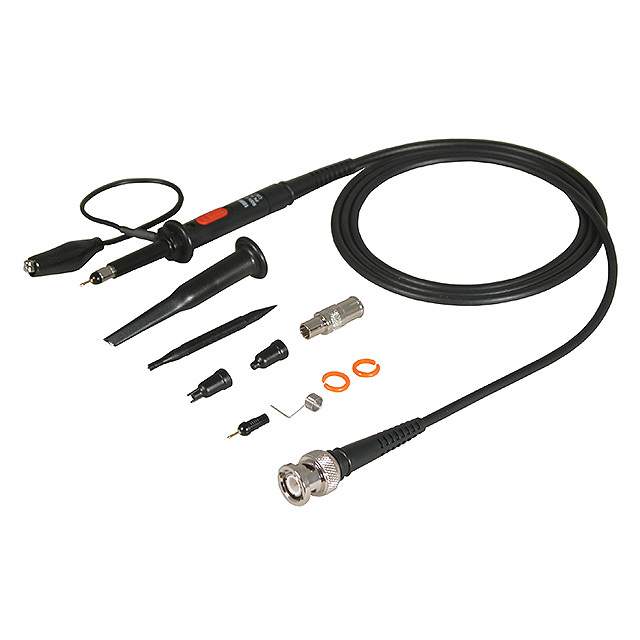 Descripción detallada 1:1, 10:1 Passive 100MHz 47.244" (1200.00mm) Black Oscilloscope Probe Test Lead 1M, 10M Input Resistance CAT II 300V Color Black