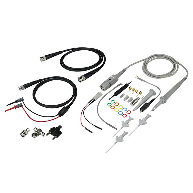 incluye BNC Adapter, BNC Banana Plug Adapter, BNC Cable, Ground Lead, Insulating Tip, Sprung Hook, Rings, Trimmer Tool Descripción detallada 10:1 Passive with Readout 500MHz 47.244" (1200.00mm) Black and Gray Oscilloscope Probe Test Lead 10M Input Resistance CAT II 300V