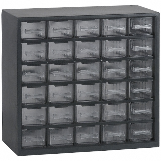 Descripción detallada Component Storage Plastic, Styrene Gray Individual Drawers 11.250" L x 12.000" W (285.75mm x 304.80mm) X 6.250" (158.75mm) Diseño Individual Drawers