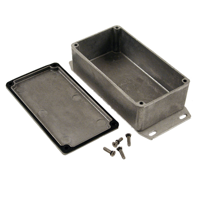 Descripción detallada Box with Mounting Flange Metal, Aluminum Unpainted Cover Included 4.724" L x 2.579" W (120.00mm x 65.51mm) X 1.547" (39.29mm) Diseño Cover Included