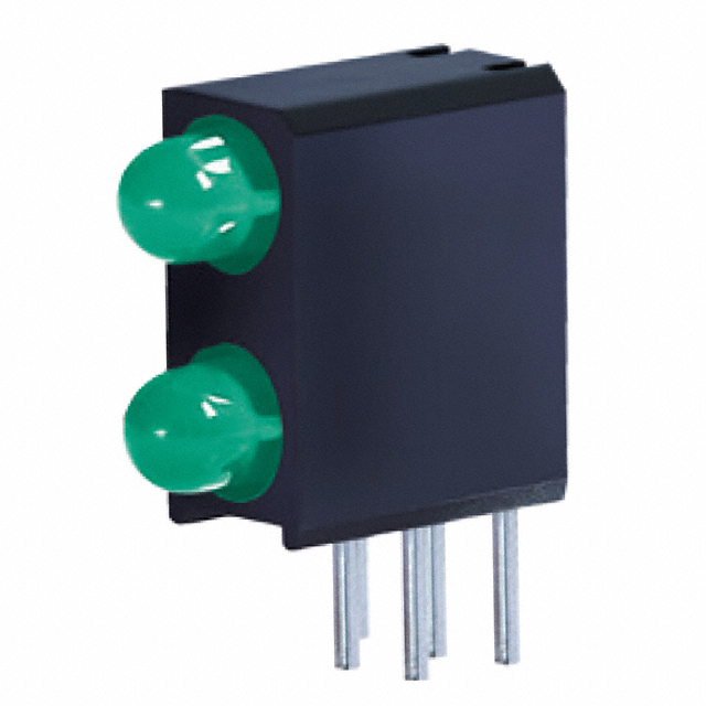 Estado sin plomo / Estado RoHS Lead free / RoHS Compliant Descripción detallada LED Circuit Board Indicator 2 High Green (x 2) Diffused, Tinted 2V 140mA Round with Domed Top, 3mm (T-1), 2.90mm Through Hole, Right Angle