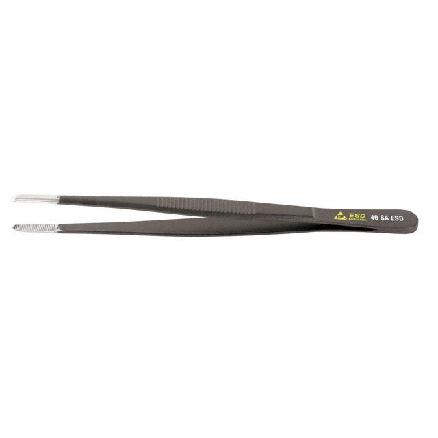 Descripción detallada Tweezers Acid Resistant, Anti-Magnetic, ESD Safe, Serrated Flat Blunt 40 5.71" (145.0mm)
